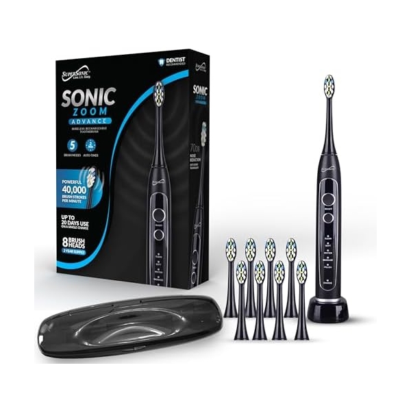 SUPERSONIC SONIC ZOOM ADVANCE WIRELESS RECHARGEABLE TOOTHBRUSH, 8 HEAD, 40K OSC.