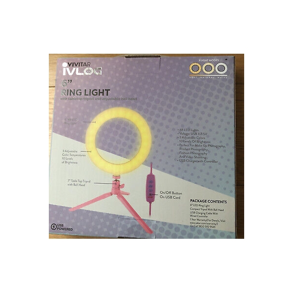 VIVITAR IVLOG 6" FULL COLOR RING LIGHT W/ TABLE STAND TRIPOD.